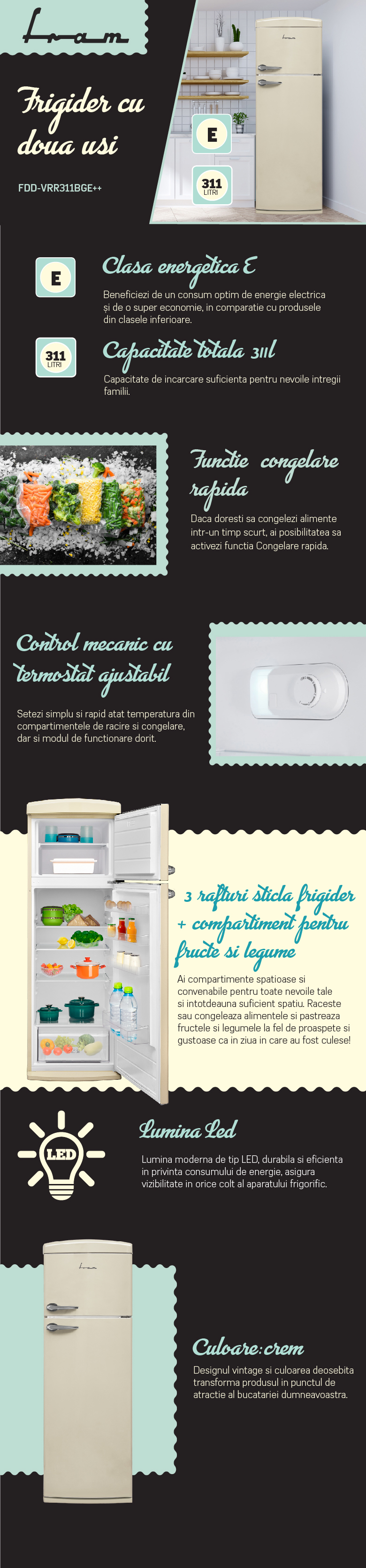 - Dimensiuni (WxDxH): 60.5 x 63.5 x 179.4 cm,