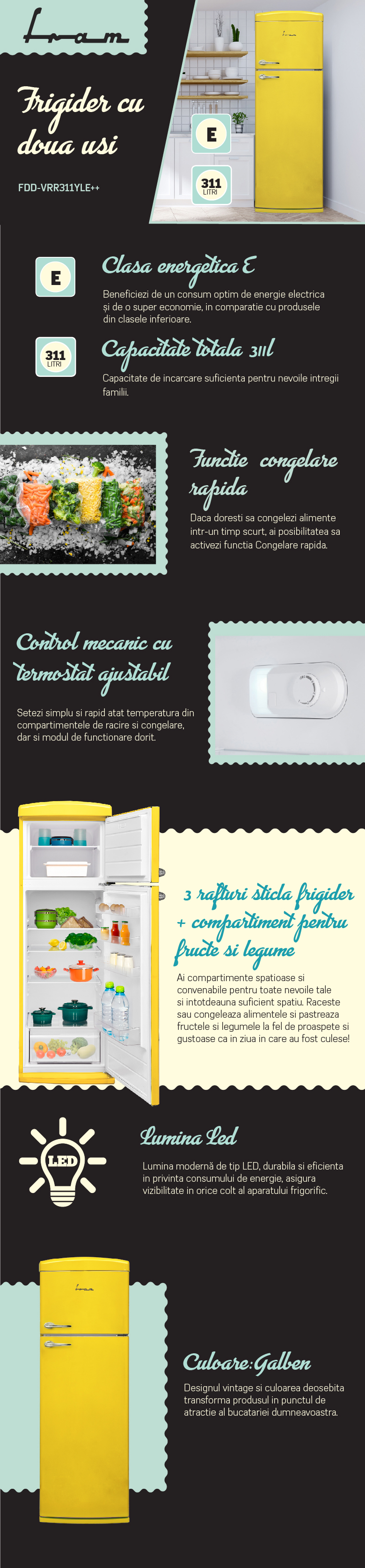 - Capacitate totala: 311L,